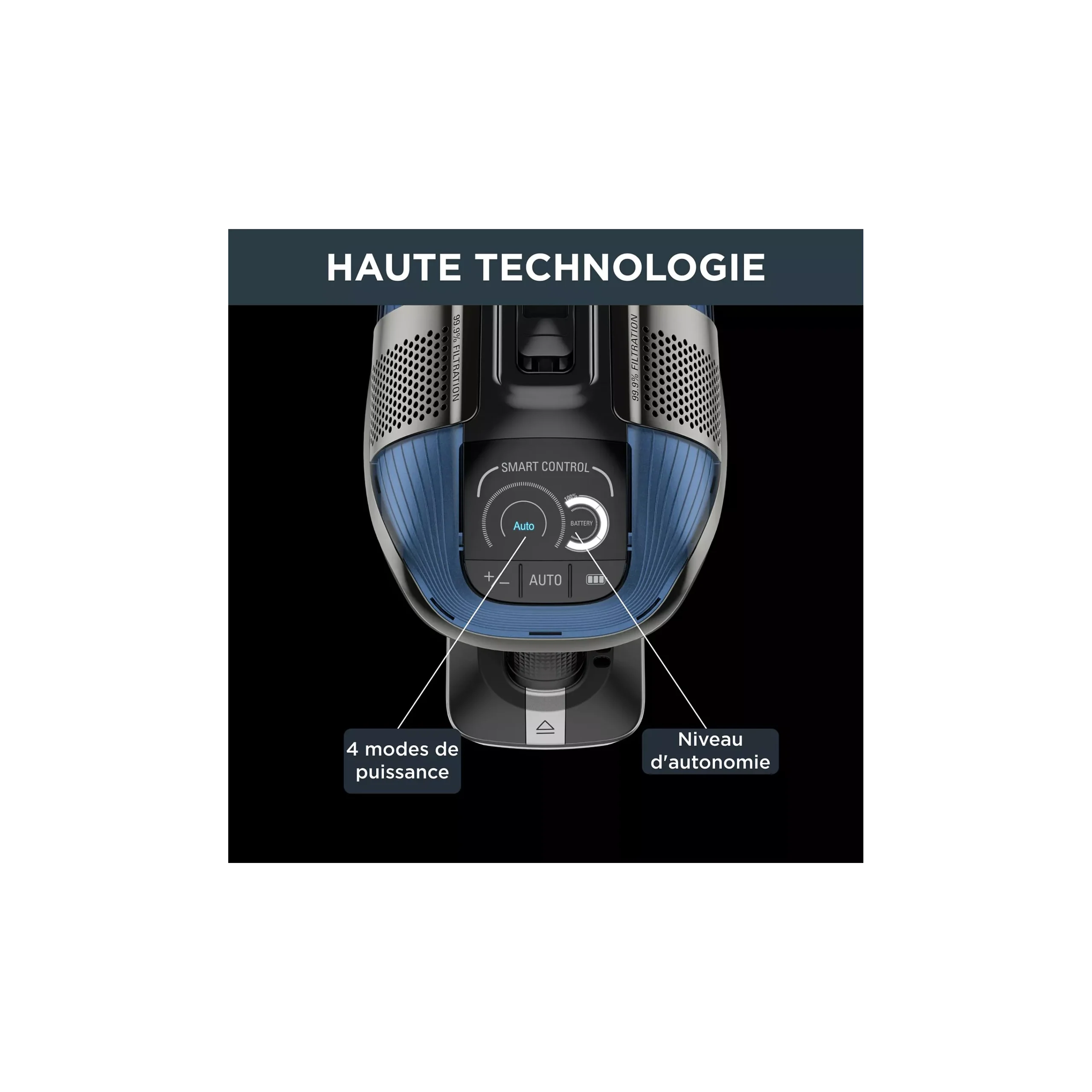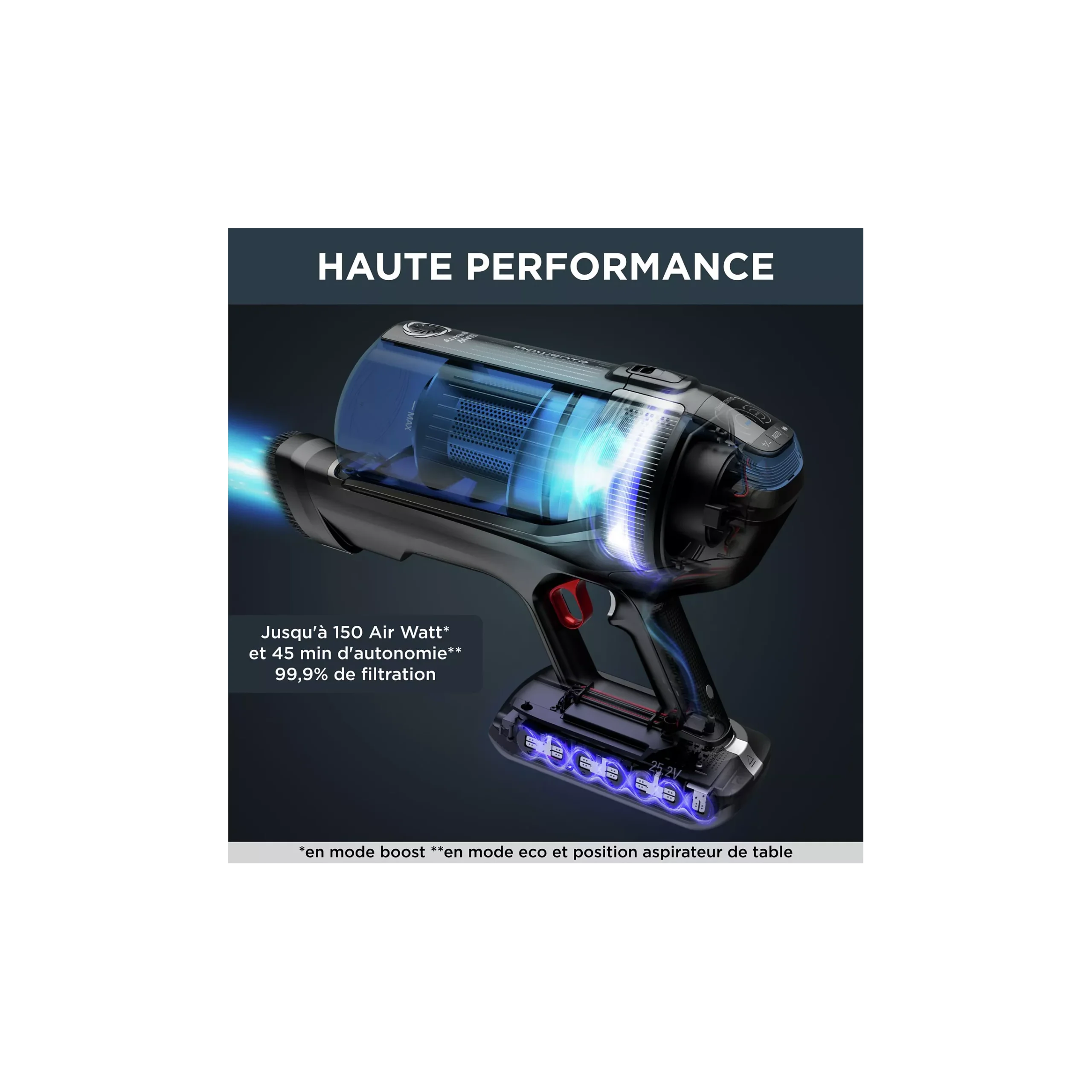 Puissance d’aspiration : 19 000 Pa, réglable selon le type de sol.