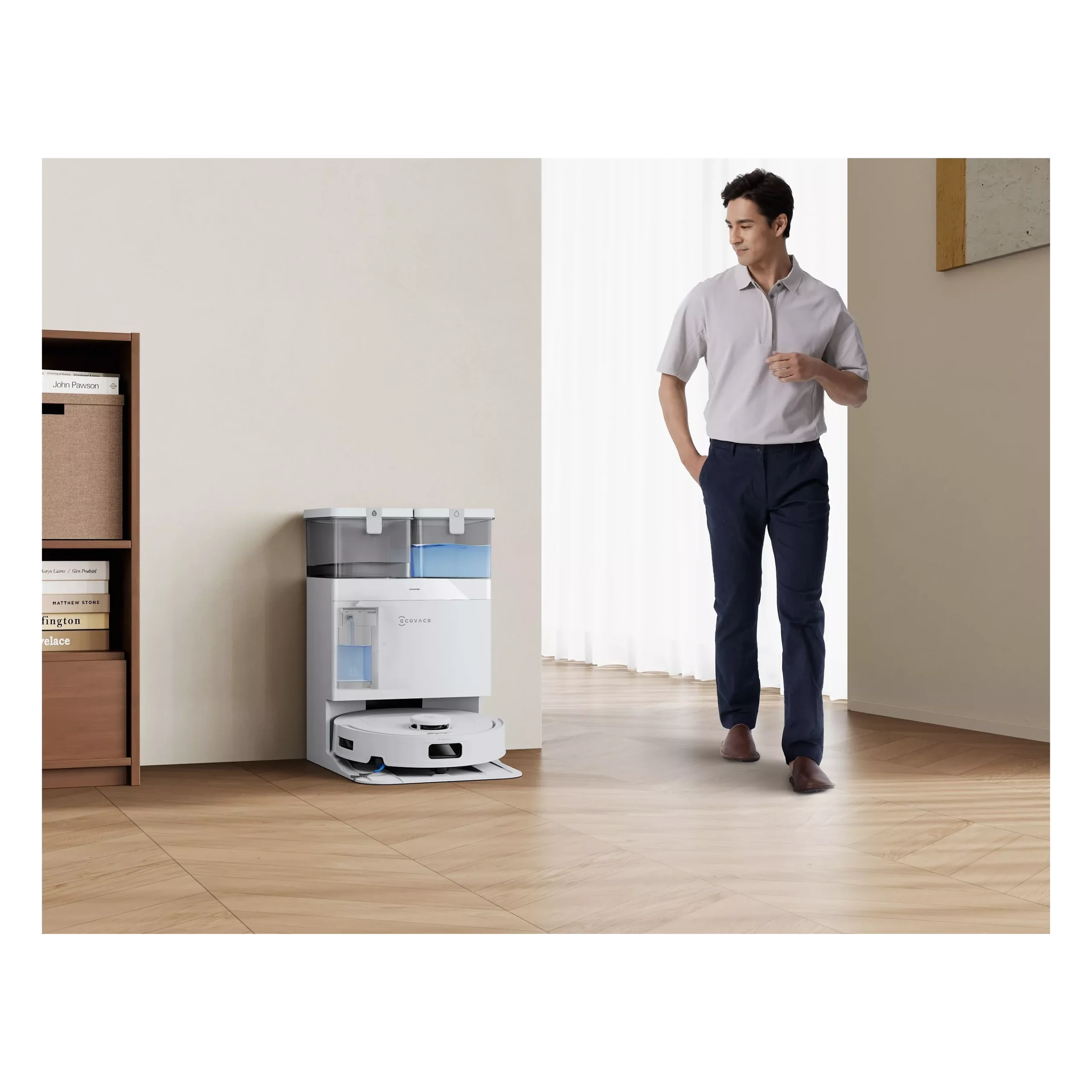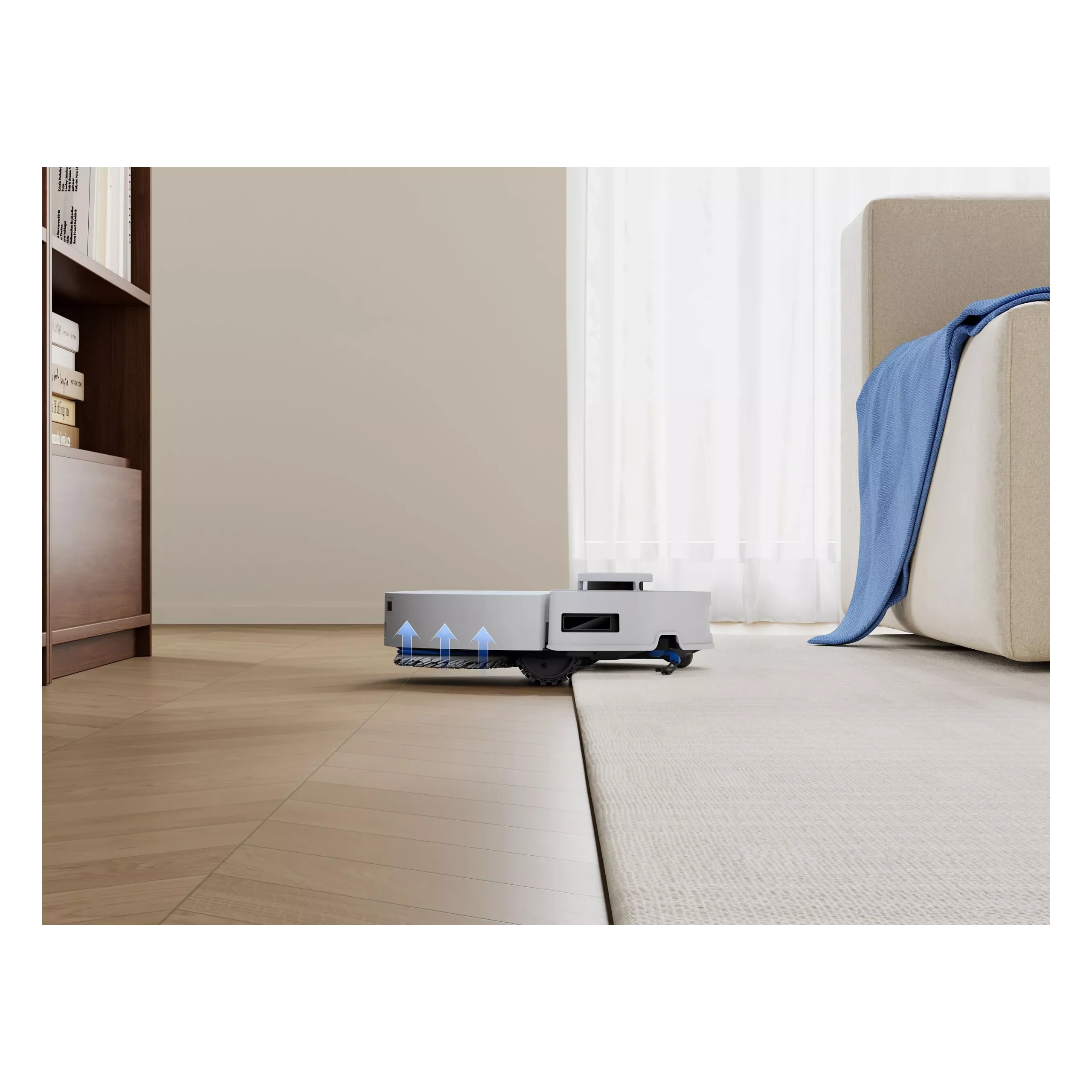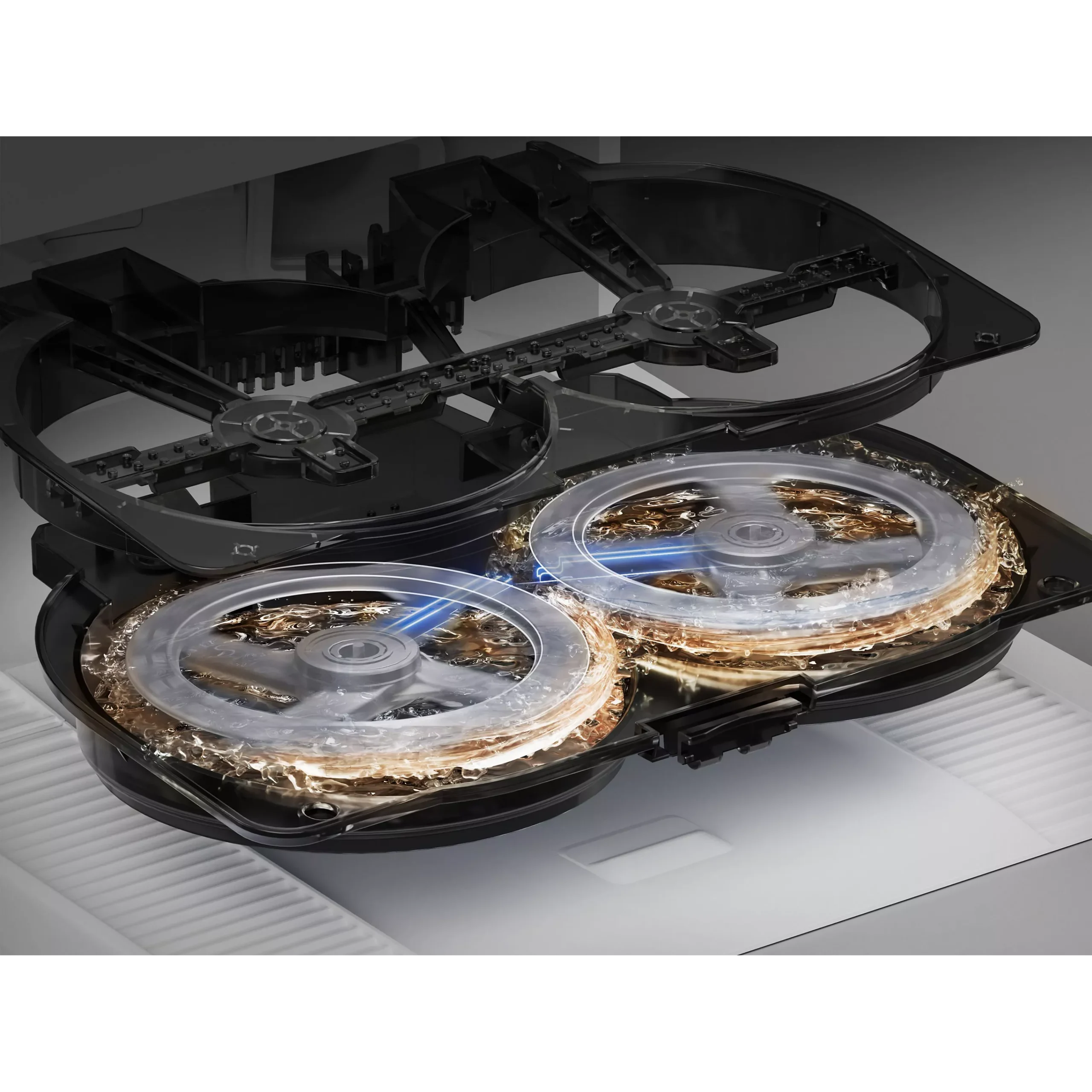 Le robot combine aspiration et lavage en un seul passage pour un nettoyage complet.