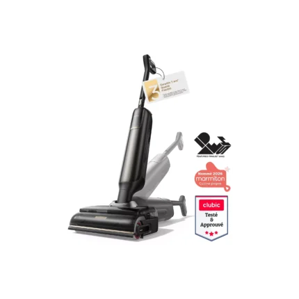Ce robot aspirateur est conçu pour aspirer et laver les sols automatiquement, offrant un entretien efficace et pratique de votre intérieur.