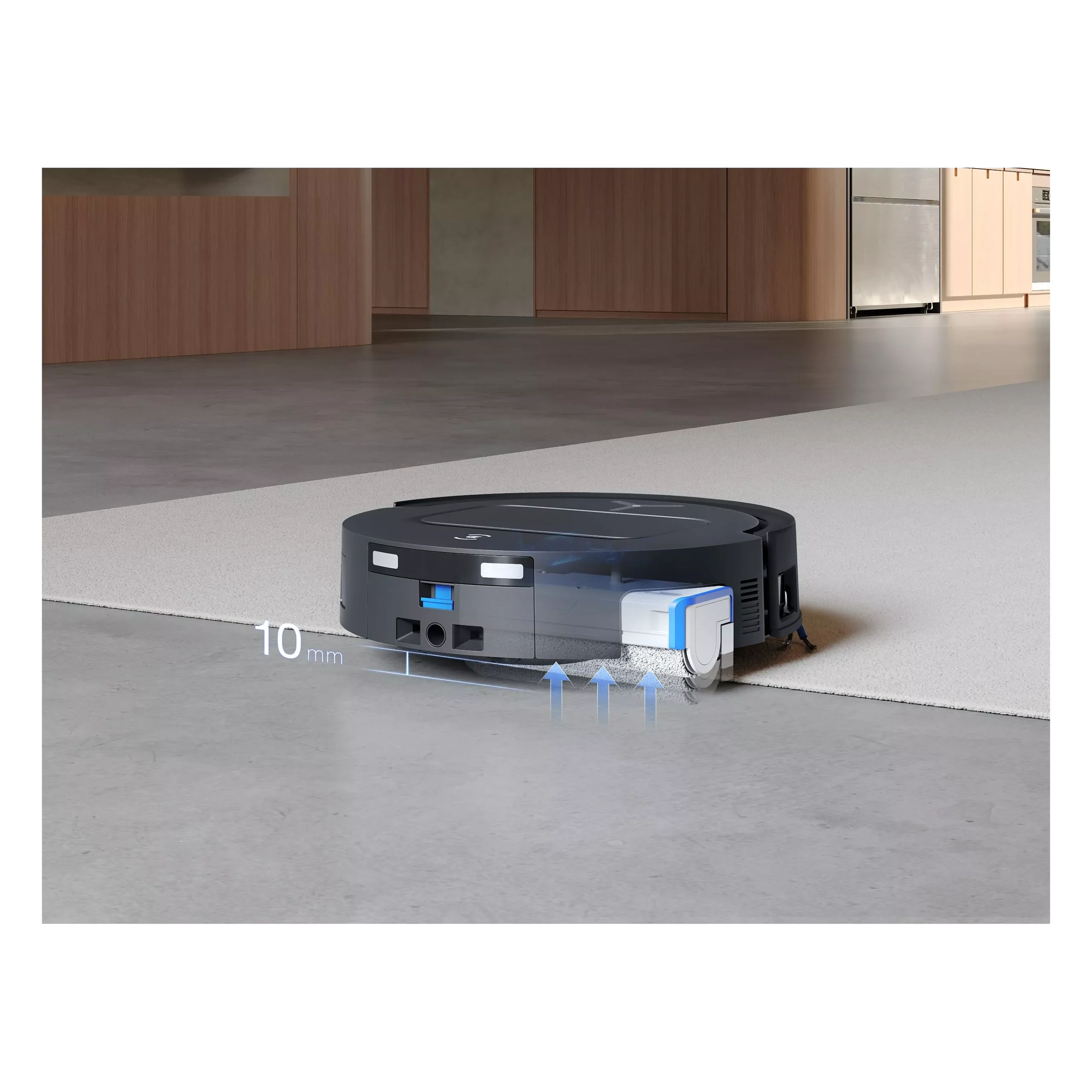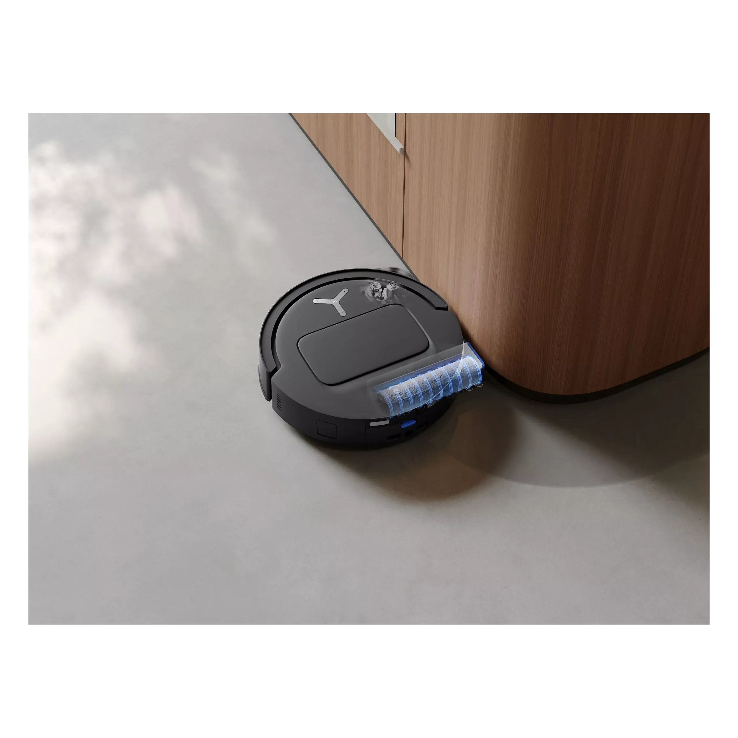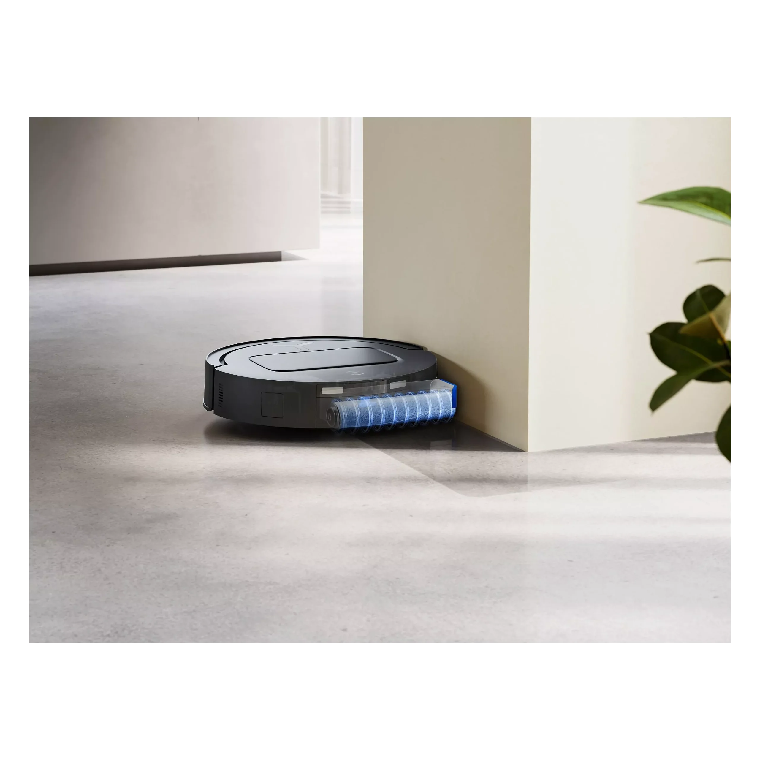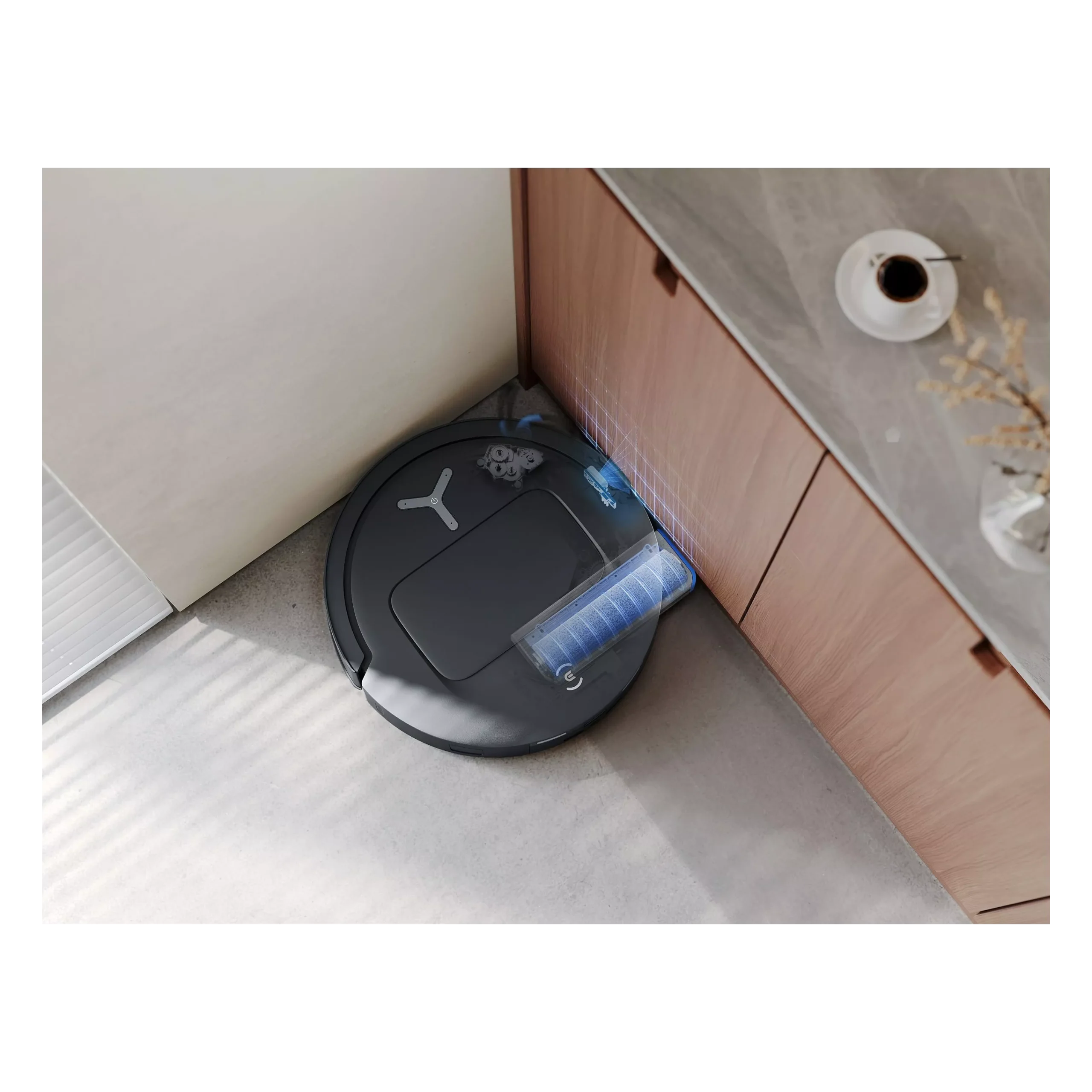Brosse latérale déportée pour un ramassage optimal dans les coins et le long des murs.