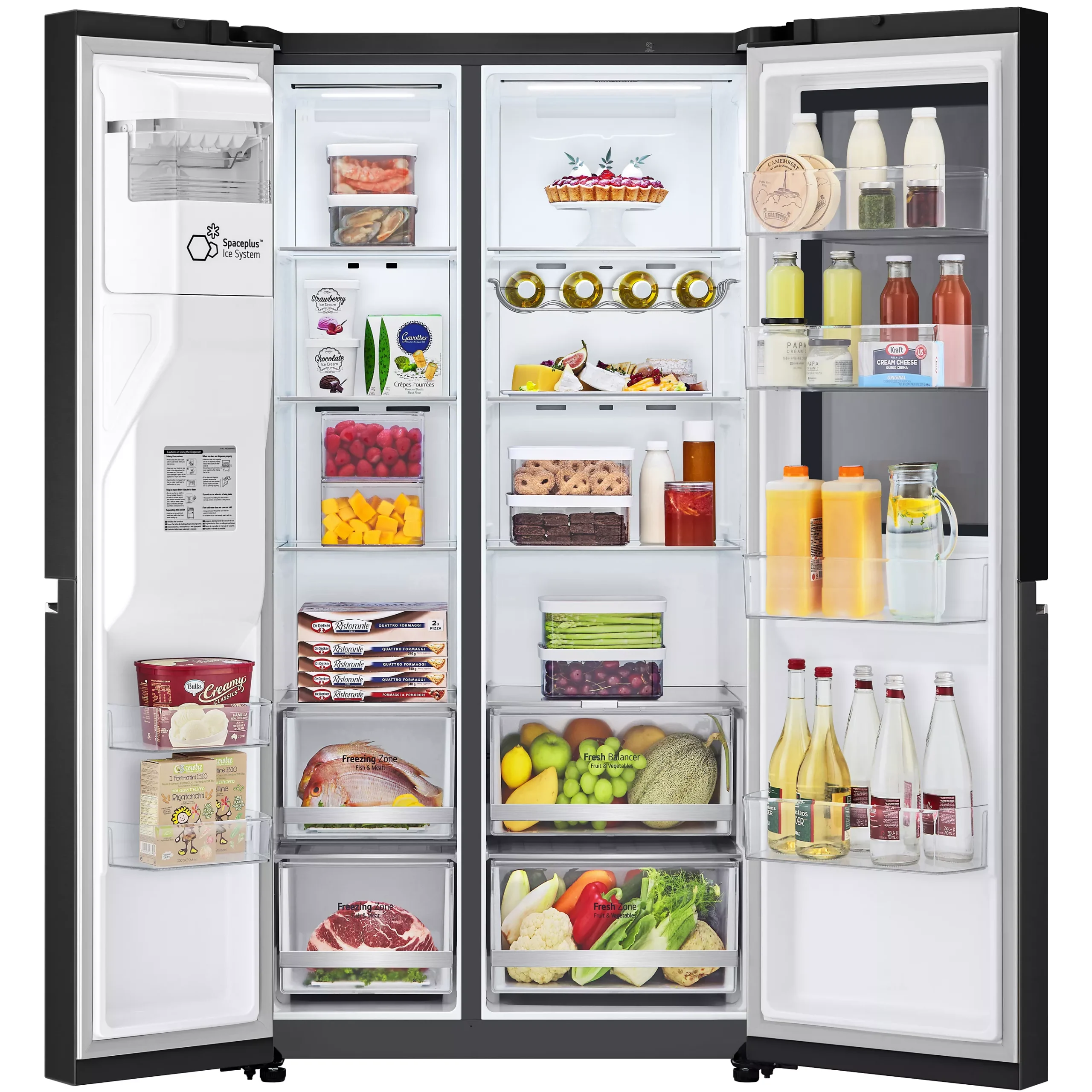 Un réfrigérateur américain spacieux (635 L) avec congélateur sur le côté, au design noir carbone élégant. Silencieux (35 dB), il allie esthétique et performance pour toute la famille.